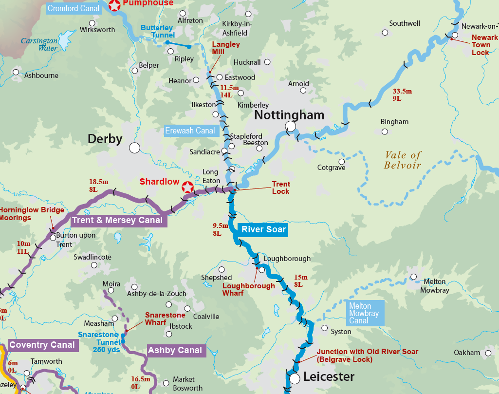 The map provides a clear overview of the full Canal Companions coverage, alongside other navigable waterways, making it simple to understand how routes connect across the network. Major cruising routes, junctions and navigable lengths are clearly shown, with enlarged inset sections offering extra clarity in built-up or complex areas.